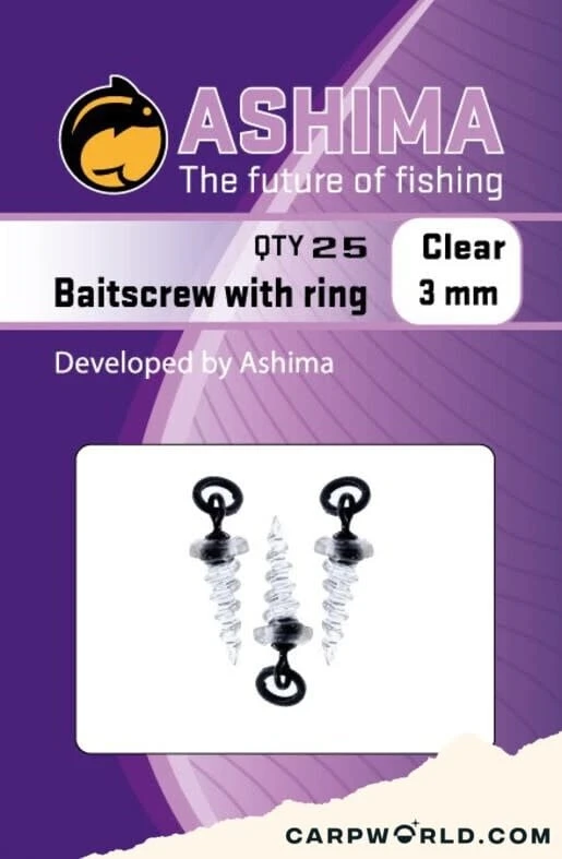 De ashima baitscrew met 3 mm ring is uniek in zijn soort. Ashima heeft dit product zo gemaakt dat pop up’s veel beter blijven zitten. Het scherpe dunne schroefdraad tapt zich in de pop up. Hierdoor breekt de pop up niet en blijft deze ook bij het uitwerpen goed zitten. Door de baitscrew uit te voeren met een 3 mm ring is deze voor verschillende rigs multi inzetbaar.