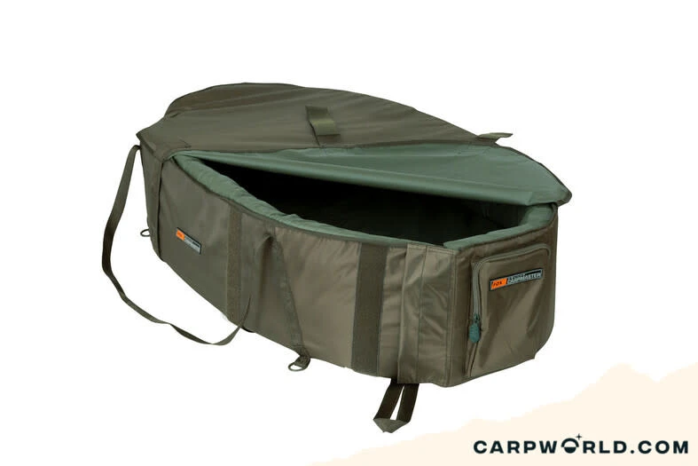 De Fox Deluxe Carpmaster XL onthaakmat is een nieuw en verbeterd model dat gemakkelijker op te vouwen is dan zijn voorgangers. De mat is voorzien van een handige grote gevouwen zak met ritssluiting die perfect gebruikt kan worden voor de opslag van carp care materialen, unsters en een weigh bar. Verder zorgt het High density foam, de Soft touch voering en de stevige gevoerde wanden voor een optimale bescherming van de vis. Daarnaast zorgt de bodem van rubber gaas voor een zeer snelle waterafvoer, waardoor de onthaakmat niet meer lekt tijdens het transport. Een ander kenmerk is de dichte retaining flap met klittenband bevestiging, waardoor de vis veilig terug naar het water gebracht kan worden. Als laatste is de mat voorzien van een ophanglus, haringogen en EVA handgrepen. Afmeting 125 cm. bij 70 cm. binnenmaats