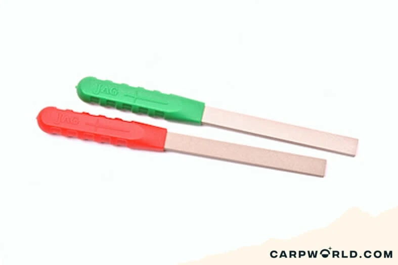Een complete set dus 2 in een verpakking. Kan gebruikt worden in samenwerking met het SP Max bestand om de haakpunten te slijpen tot een niveau dat veel hoger ligt dan elke nieuwe haak. Ze zijn verkrijgbaar in medium en fijne kwaliteite om een kleine hoeveelheid metaal te verwijderen en zo verbazingwekkend scherpe haakpunten te bereiken. Verkocht in een set.Red Medium
