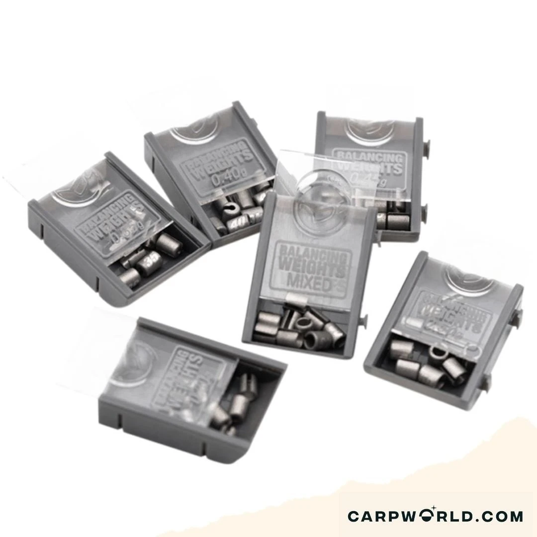 De DM BALANCING WEIGHTS zijn verkrijgbaar in 5 gewichten (0.30g – 0.50g) en zijn elk voorzien van met een laser geëtst nummer voor eenvoudige herkenning. De 0,30g is te herkennen aan 30. Als extra optie is er ook een “mixed pack” met in totaal 15 gewichten verkrijgbaar (3 van elk). Met deze pack kan je zelf eenvoudig uitproberen welke gewichtjes voor jou perfect zijn en deze vervolgens keer op keer blijven gebruiken in combinatie met dat specifieke haakaas.