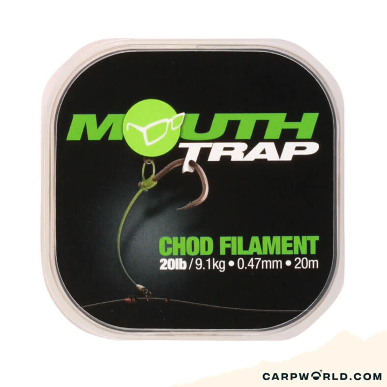 Mouthtrap, welke beschikbaar is in breeksterktes van 15lb, 20lb en 25lb is voorzien van een natuurlijke “Carpy” kleur, welke eenmaal in het water vrijwel onzichtbaar wordt. Dit laatste is natuurlijk iets dat de hoogste prioriteit heeft binnen het Team Korda.
