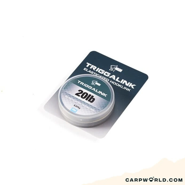 Een unieke manier om de schuwste karpers om de tuin te leiden. Triggalink is een soepele braid waarin PVA verwerkt zit. Triggalink krimpt en wordt elastisch als het nat wordt maar eens terug droog lijkt het materiaal normaal. De haakpunt wordt op een andere manier gezet wanneer een karper de Triggalink op het lood aanspant als het ware gekatapulteerd. Karpers weten simpelweg niet hoe ze met de elasticiteit moeten omgaan. Door te stretchen wordt de haak verder in de bek geprikt zelf bij de schuwste vissenn. Triggalink verbetert de houvast van de haak zeker bij weerhaakloze haken en tussen waterplanten. Het is het meest gespecialiseerd onderlijnmateriaal ooit!