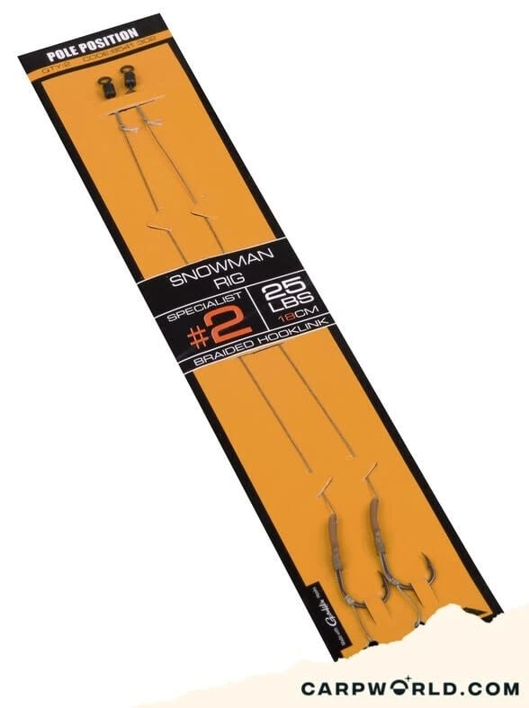 Vis jij graag met een soepele rig van snel zinkend materiaal? Eén die zowel geschikt is voor een snowman- als voor een bodemaas presentatie? Maar heb jij geen tijd of zin om zelf deze rig te knopen? Geen punt! Pole Position heeft dit namelijk al voor jou gedaan. De Snowman Rig van Pole Position is namelijk de oplossing voor jou. Deze is verkrijgbaar met haakmaat 2, 4 en 6, waardoor er altijd één is die past bij jouw aanpak. Heb je nog vragen? Bel, e-mail of bezoek onze winkel en we voorzien je graag van passend en vakkundig advies.